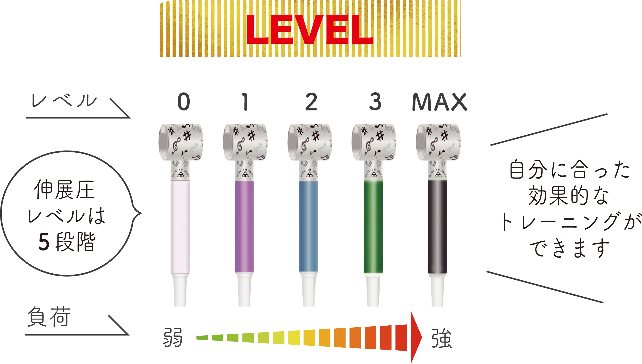 本製品は、おもちゃの「吹き戻し」ではありません。 息を「吹く」力だけでなく、負荷によってお口が膨らまないように「耐える」力が求められる、本格的な口腔機能トレーニング器具です。
